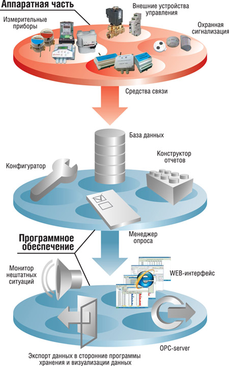 • контроль линий связи со счетчиками энергоресурсов;