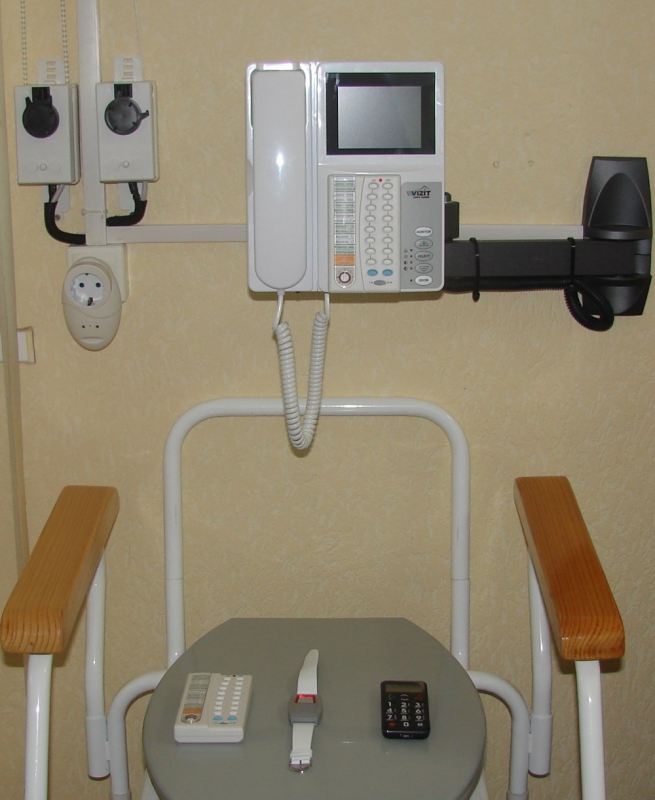 - оповещение сиделок, родственников, либо лечащего врача: автодозвон, «тревожная кнопка».