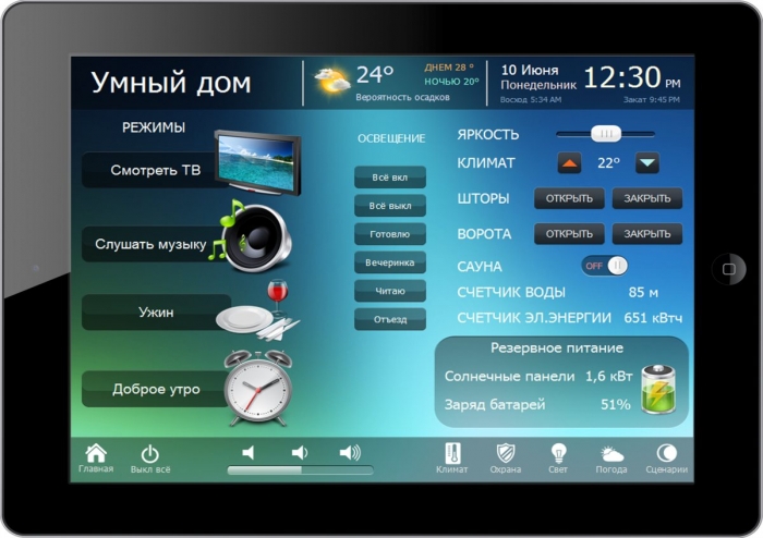 - Управление температурой, влажностью, вентиляцией, кондиционерами
